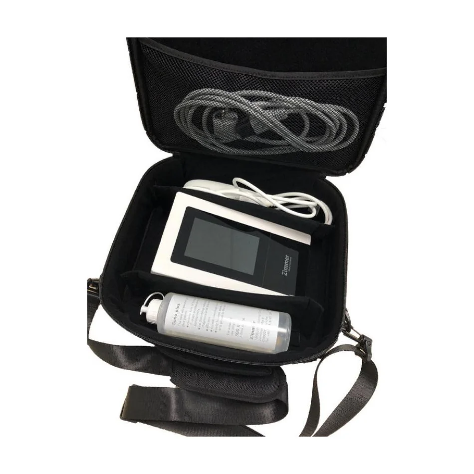 Aparat do ultradźwięków SonoOne marki Zimmer Medizin Systems to nowoczesne, przenośne urządzenie do profesjonalnej terapii ultradźwiękowej, stworzone z myślą o gabinetach fizjoterapii, rehabilitacji, medycyny sportowej oraz ortopedii. W zestawie znajduje się praktyczna torba transportowa, która ułatwia bezpieczne przechowywanie i transport urządzenia.