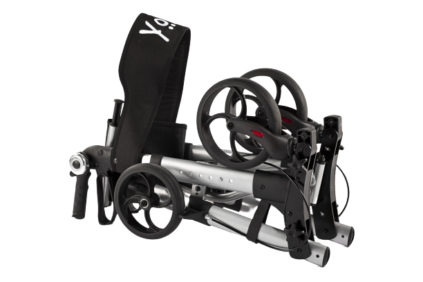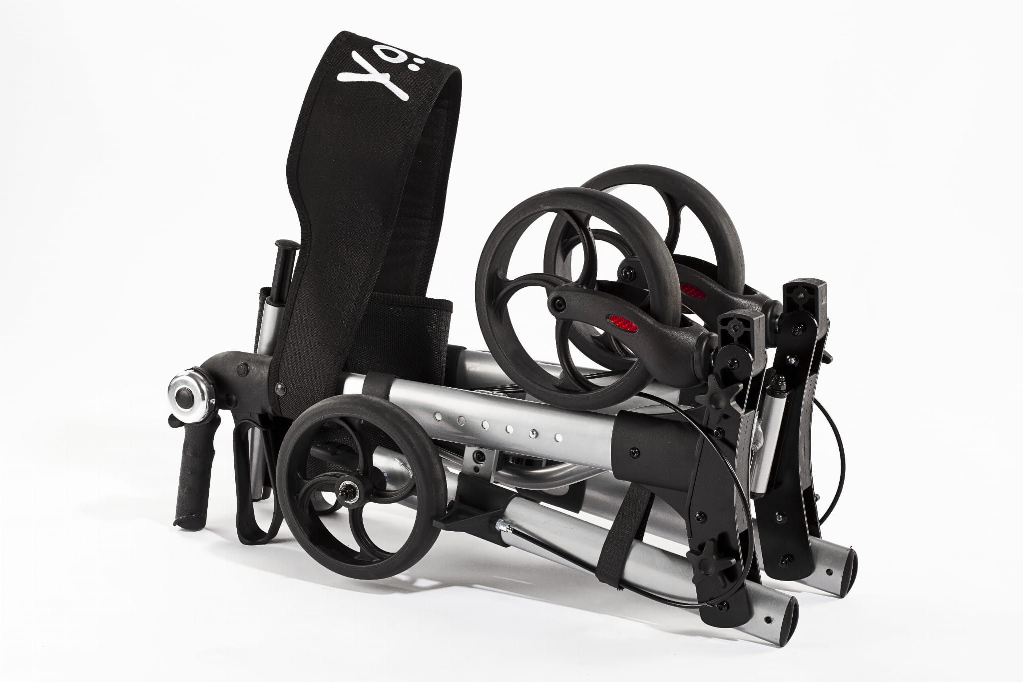 YOLA Timago posiada mechanizm szybkiego składania, dzięki czemu bez trudu zmieści się w bagażniku samochodu lub w szafie, gdy nie jest używany.