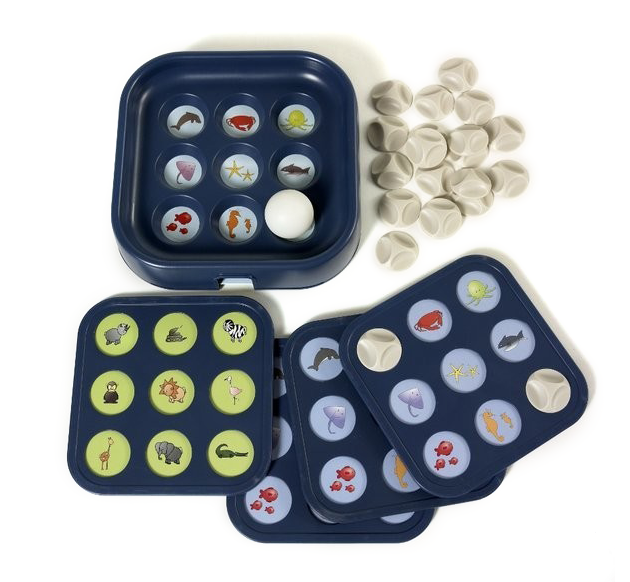 Gra zawiera podstawę z otworami, 2 dwustronne plansze do podstawy z obrazkami lub ścieżkami, 4 dwustronne plansze dla każdego gracza z obrazkami zwierząt, piłeczka i 36 żetonów.