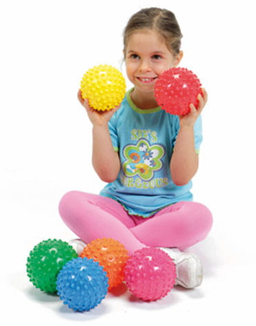 Piłki sensoryczne Easy Grip są miękkie, wyposażone w wypustki, które zapewniające dodatkową stymulację. Mogą być wykorzystywane jako trener dłoni, do stymulacji dotykowej oraz masażu. Aktywna zabawa z piłkami Easy Grip wzmacnia chwyt, pobudza zmysł dotyku, uczy dzieci rozpoznawania i rozróżniania kolorów.