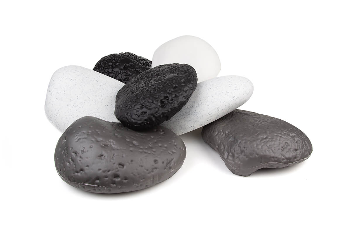 Zabawka sensoryczna imitująca kamienie rzeczne do świetne urozmaicenie zabaw dla dzieci. Każdy kamień posiada inny kształt i fakturę, dzięki czemu znakomicie sprawdzi się podczas grupowych zajęć z integracji sensorycznej.