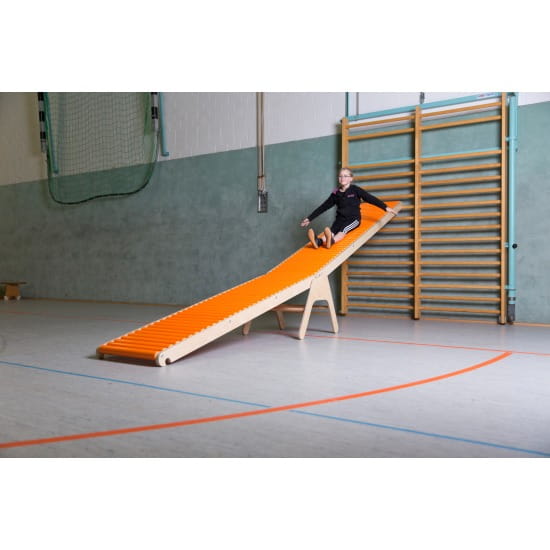 Stojak do pochylni rolkowej to produkt, przy pomocy którego możliwe jest połączenie dwóch pochylni i zwiększenie powierzchni do zjeżdżania. Pochylnie montowane są do specjalnych szczebli stojaka, które znajdują się na różnych wysokościach, co gwarantuje idealne przyleganie pochylni do siebie i zapewnia wysoki poziom komfortu w trakcie zjeżdżania. Dodatkowo, w przypadku zastosowania tylko jednej pochylni rolkowej o długości 200 cm, stojak może służyć jako punkt startowy.