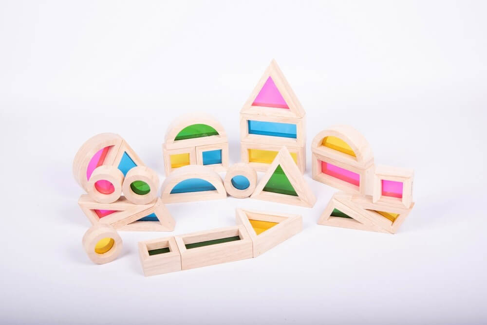W komplecie znajdują się klocki o sześciu różnych kształtach z czterema różnymi przeźroczystymi wkładkami. Klocki można używać na wiele sposobów. Dzieci w trakcie zabawy mogą poznać różnego rodzaju kształty oraz to jak one się zachowują w trakcie tworzenia różnych konstrukcji. Dzięki kolorowym wkładkom dzieci poznają kolory oraz jak zachowują się różne źródła światła.