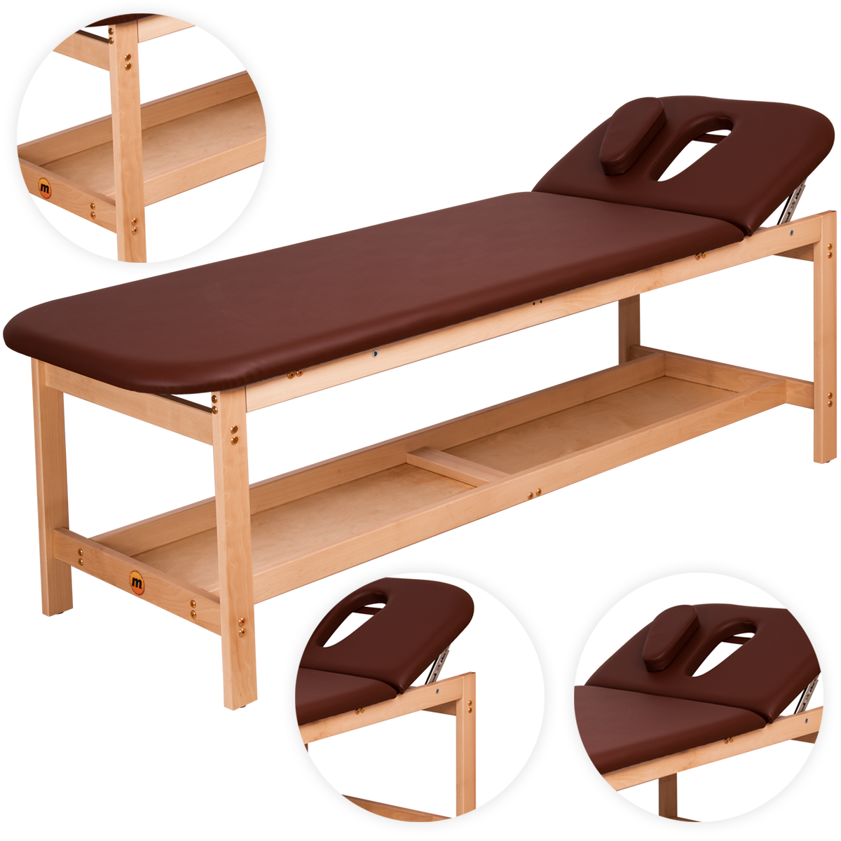 Regulowane wezgłowie z 5-stopniowym podnośnikiem umożliwia łatwą adaptację do potrzeb pacjenta, oferując wygodę i funkcjonalność podczas różnorodnych procedur. Dodatkowo, leżanka wyposażona jest w wyprofilowany otwór na twarz z estetyczną zaślepką, co zwiększa komfort użytkowania.