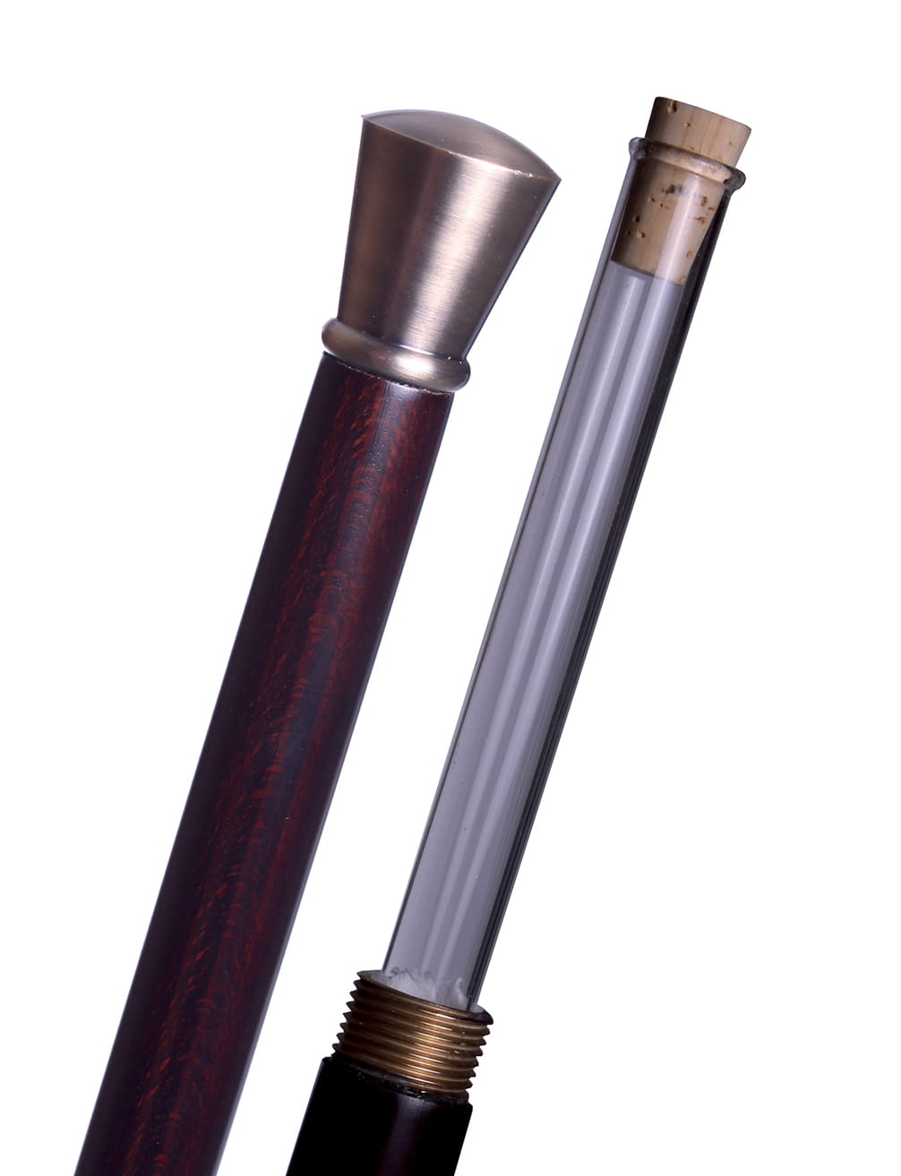 - Wbudowana fiolka – pozwala na dyskretne przechowywanie drobnych przedmiotów, takich jak leki czy notatki.