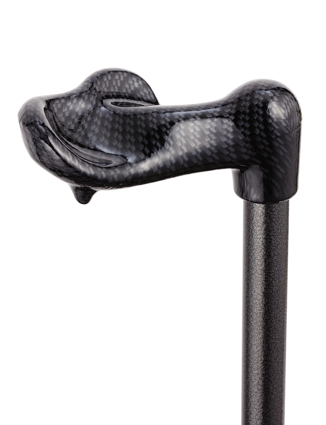 Specjalnie profilowany anatomiczny uchwyt zmniejsza nacisk na dłoń i nadgarstek, zapobiegając zmęczeniu. Materiał typu carbon look nadaje lasce elegancki, nowoczesny wygląd.