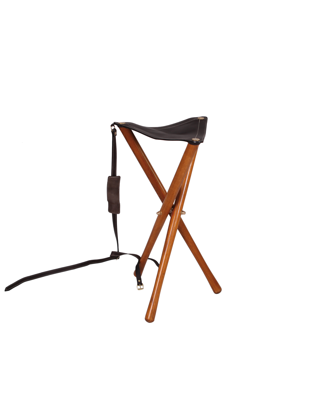 Laska z siodełkiem polowa, drewno i skóra naturalna