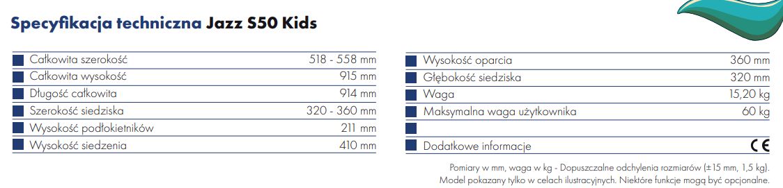Najważniejsze cechy wózka JAZZ S50 Kids: