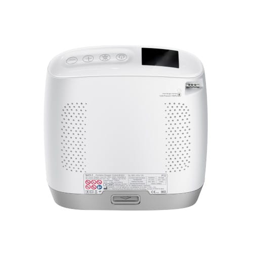 - Bezpieczne użytkowanie – urządzenie wyposażone jest w alarmy informujące o niskim poziomie baterii, nieprawidłowym działaniu lub przerwie w dostawie tlenu.