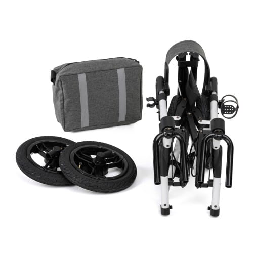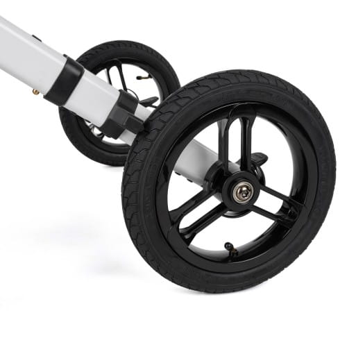 - Cztery duże koła – gwarantują płynność jazdy, bardzo dobrą zwrotność i stabilność na różnych nawierzchniach.