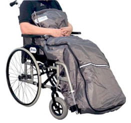 Anatomiczny kształt, wykonany z nieprzemakalnego nylonowego materiału odpornego na uszkodzenia z ocieplaczem w środku. Zapewnia komfort użytkowania oraz chroni przed chłodem, wiatrem oraz deszczem. Zamykanie zapewnia duży zamek błyskawiczny wszyty dookoła produktu. Dodatkowo z przodu śpiwora znajduje się kieszeń zapinana na duży zamek. Dodatkowo, dwa odblaskowe pasy zapewniają bezpieczeństwo. Regulowany pasek z tyłu i elastyczne szlufki gwarantują bezpieczne mocowanie do oparcia lub rączek wózka inwalidzkiego. Dostępny w trzech rozmiarach S, M oraz L.
