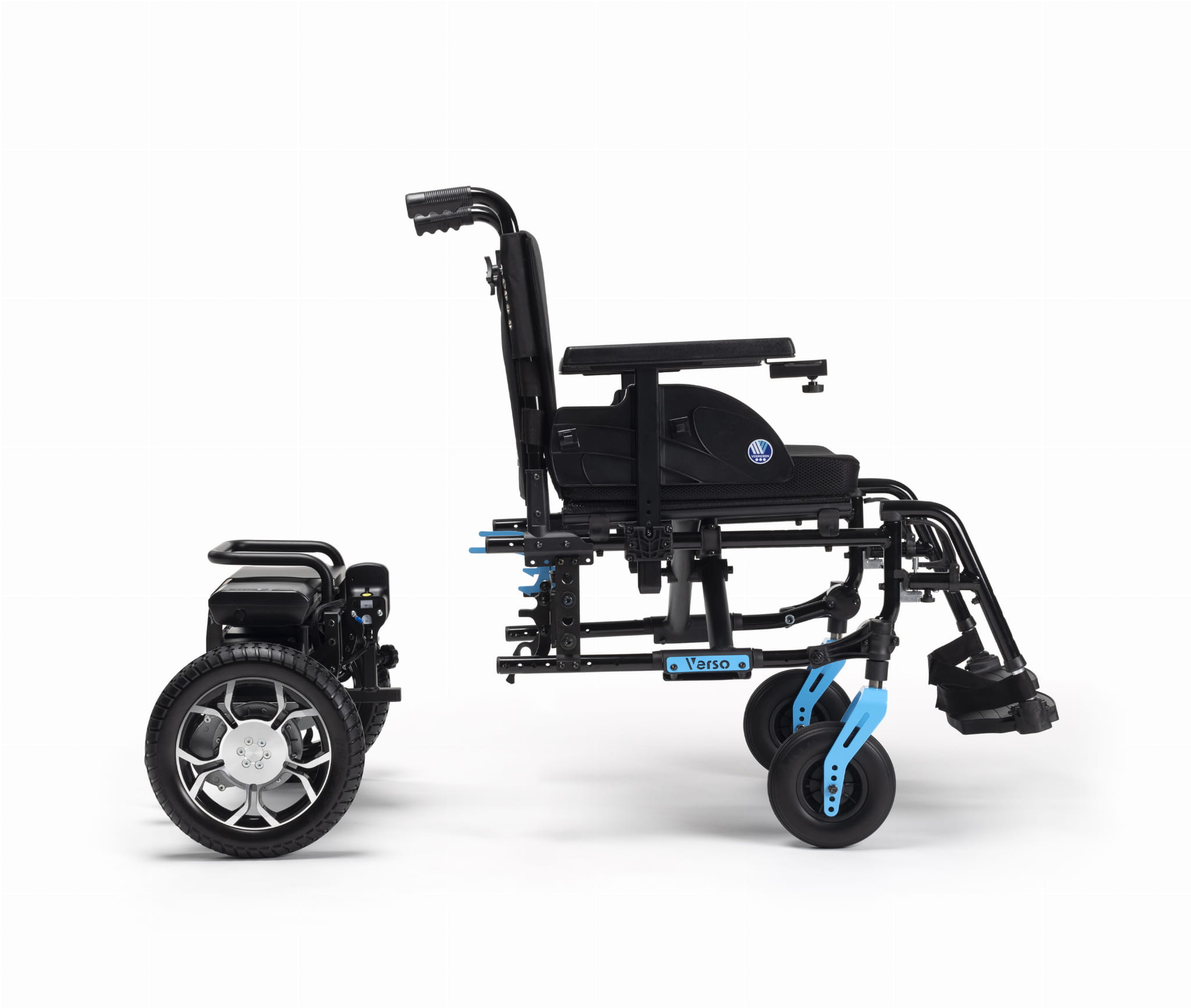 Verso, ultra lekki , zwinny i wszechstronny wózek inwalidzki z napędem elektrycznym, który stawia na lekkość konstrukcji z zarazem konfigurowalność. Stworzony z połączenia trwałej aluminiowej ramy manualnego wózka z zaawansowanymi funkcjami napędu elektrycznego na tylnych kołach. Verso oferuje niezwykłe możliwości. To co go wyróżnia, to wymienna bateria litowo jonowa, większa wygoda i łatwość użytkowania. Dzięki swojej innowacyjnej konstrukcji Verso umożliwia dostosowanie wózka inwalidzkiego do unikalnych wymagań pacjenta, korzystając z różnorodnej gamy opcji dostępnych w wózkach serii V oraz możliwość szybkiej zamiany na wózek manualny. Koncepcja 2 w 1 w tej kategorii jest unikatowa na rynku.