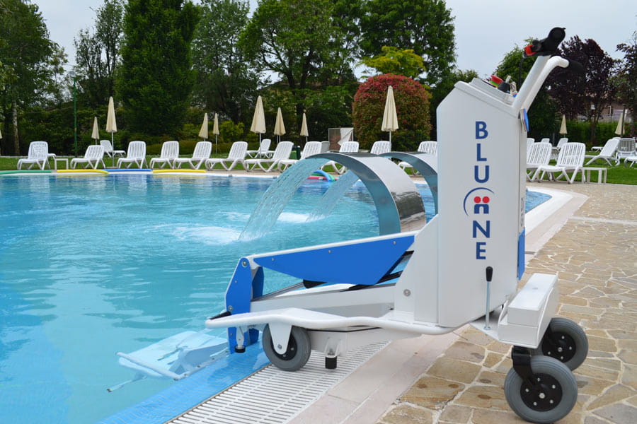 Podnośnik basenowy BluOne został zaprojektowany dla osób niepełnosprawnych zarówno poruszających się na wózku inwalidzkim jak i starszych, czy po prostu mających problemy z wejściem i wyjściem z basenu.
