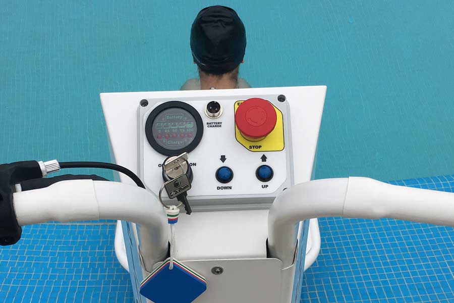Podnośnik ten jest urządzeniem dzięki, któremu z łatwością można przetransportować użytkownika do basenu i z basenu jak pod prysznic czy do szatni basenowej w łatwy i komfortowy sposób. Użytkownik po prostu siada na urządzeniu, które jest doprowadzane do krawędzi basenu a następnie siedzisko jest stopniowo opuszczane poniżej powierzchni wody. Przy wychodzeniu z wodzy proces przebiega po prostu w odwrotną stronę.