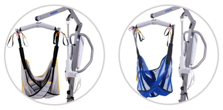 - Konstrukcja podnośników umożliwia podnoszenie pacjentów z łóżka, z wózka ale również z pozycji podłogi.