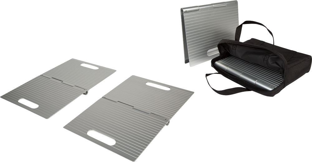 - Składana konstrukcja – łatwe przechowywanie i przenoszenie rampy w razie potrzeby.