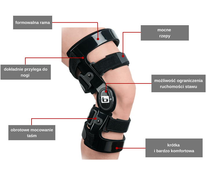 - Zawiasowa konstrukcja – zapewnia maksymalną stabilizację kolana, jednocześnie umożliwiając naturalny zakres ruchu.