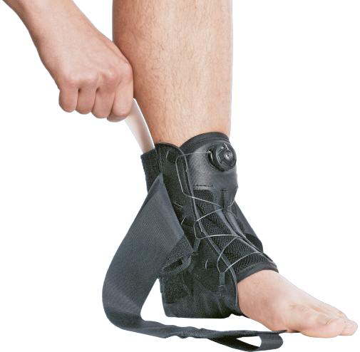 - System BOA® – precyzyjna regulacja siły ucisku za pomocą jednego pokrętła, umożliwiająca szybkie dopasowanie ortezy nawet jedną ręką