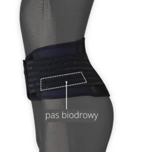- Lekka i dyskretna – orteza jest niewidoczna pod ubraniem, co pozwala na komfortowe noszenie w pracy, podczas aktywności fizycznej czy w domu.