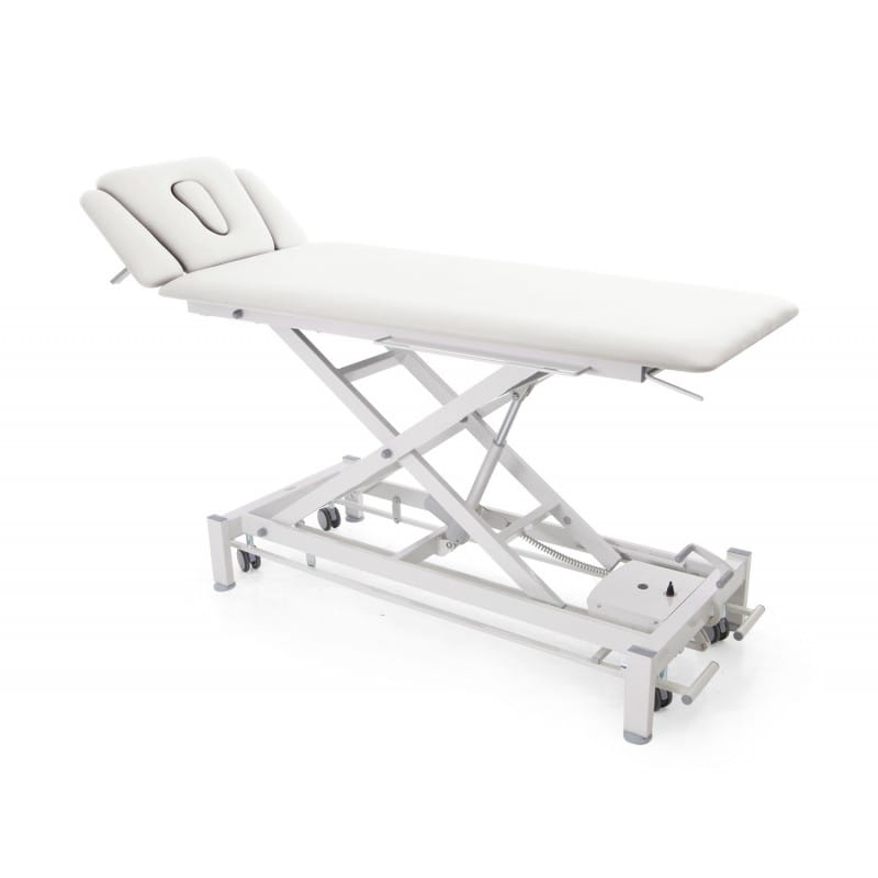 W opcji z hydrauliczną regulacją wysokości stół jest wyposażony w hydrauliczną regulację wychylenia części środkowej leżyska.