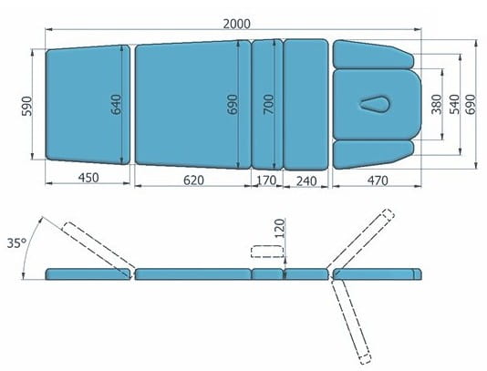 - Regulacja kąta nachylenia podnóżka: od 0 ° do +35 °
