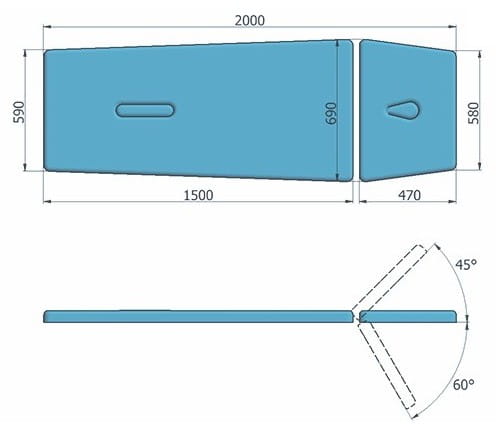 - Regulacja kąta nachylenia zagłówka: od -60 ° do +45 °