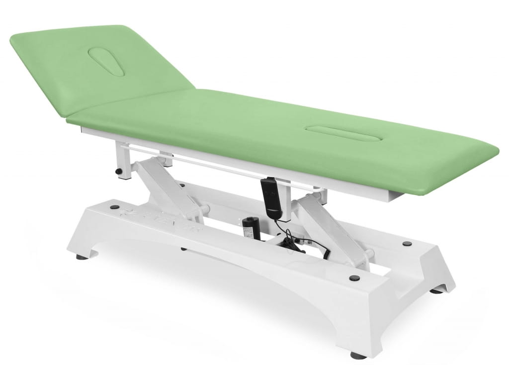 - Regulacja wysokości elektryczna – szybka i płynna zmiana wysokości stołu pozwala dostosować go do potrzeb terapeuty i pacjenta.