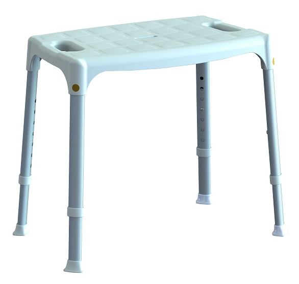- Regulacja wysokości nóżek – łatwe dopasowanie taboretu do wzrostu użytkownika oraz wysokości brodzika lub wanny.