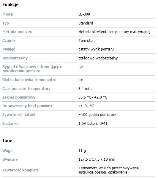 Jeśli szukasz dokładnego termometru elektronicznego, który jest prosty w obsłudze, trwały i przystępny cenowo, model LD-300 będzie doskonałym wyborem. To niezastąpione urządzenie w każdej domowej apteczce.