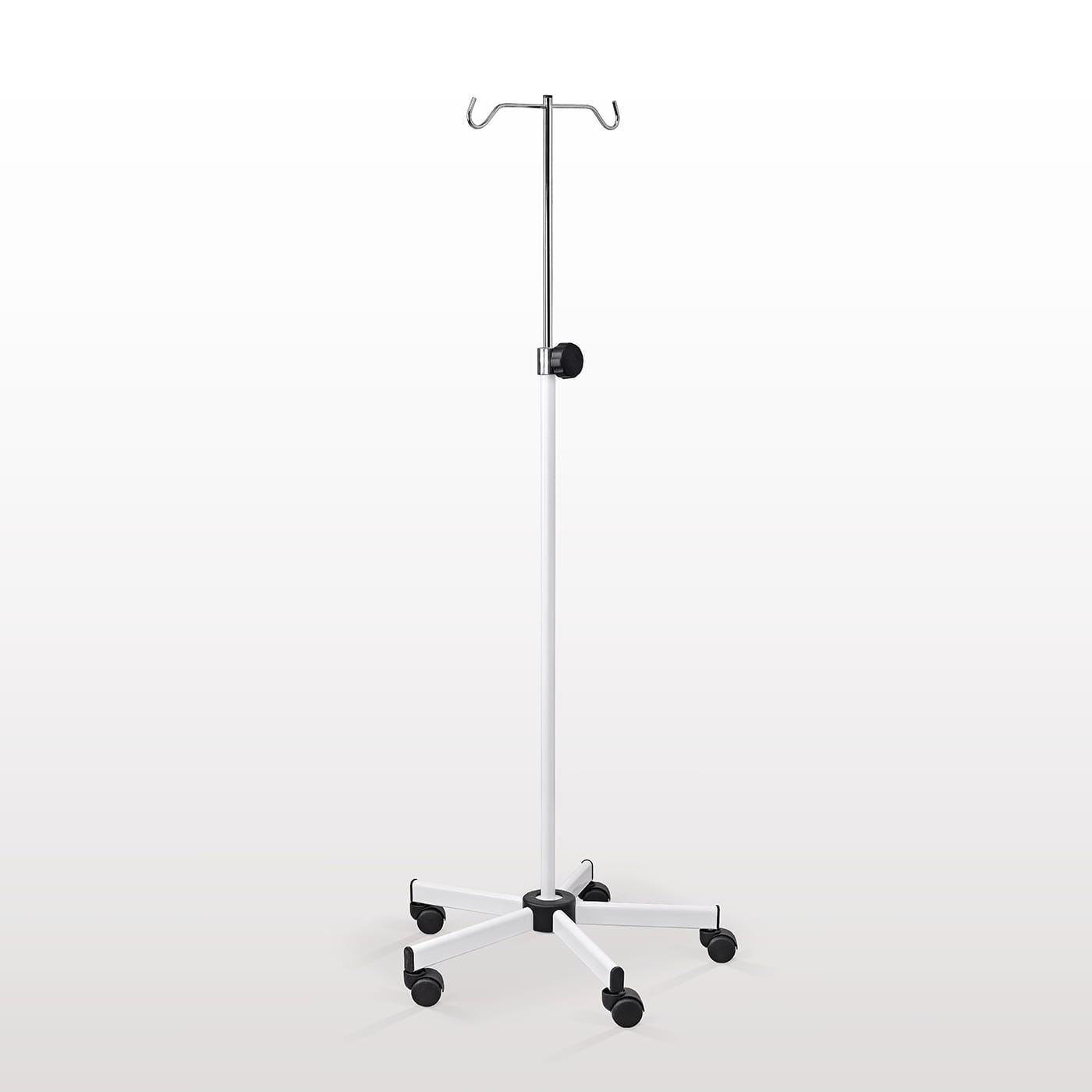 Wieszak wykonany jest z wysokiej jakości stali, odpornej na uszkodzenia mechaniczne i środki dezynfekujące, co zapewnia długą żywotność oraz łatwość utrzymania w czystości. Stabilna konstrukcja gwarantuje bezpieczne zawieszenie kroplówek i płynów infuzyjnych podczas terapii.