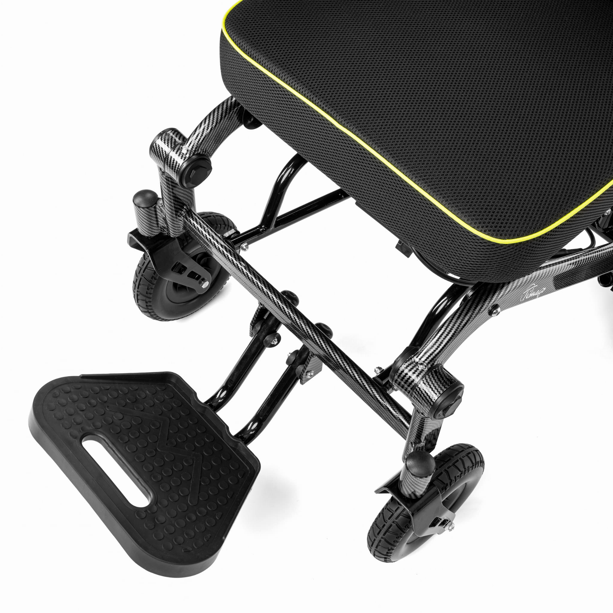 - Silniki 2x150 W – Wysokowydajne silniki umożliwiają płynną i stabilną jazdę, również na pochyłościach. To gwarancja pełnej niezależności i swobody ruchu.
