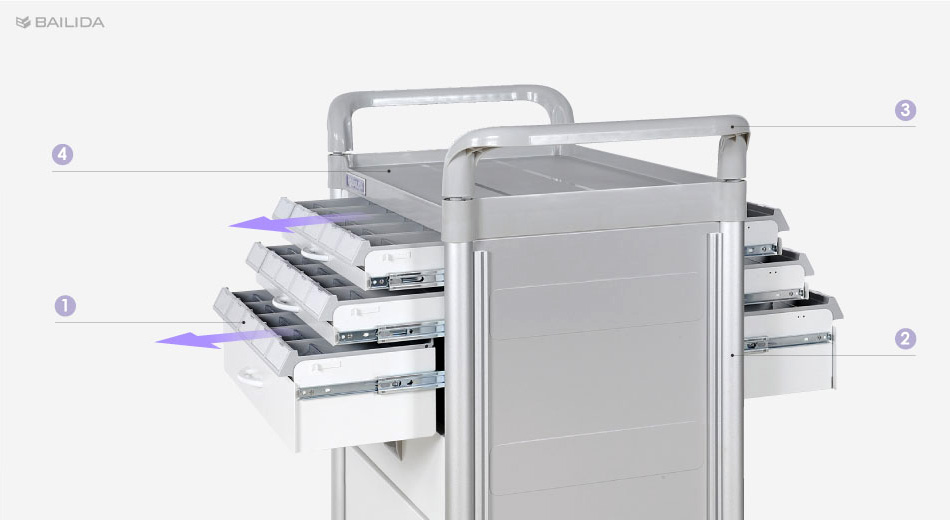Wózek do przewozu leków FC 3432DXL firmy Bailida to idealne rozwiązanie dla placówek medycznych, szpitali i domów opieki długoterminowej. Dzięki lekkiej, sztywnej aluminiowej konstrukcji i podwójnym uchwytom do pchania, wózek jest stabilny, ergonomiczny i łatwy w manewrowaniu nawet w ciasnych przestrzeniach.