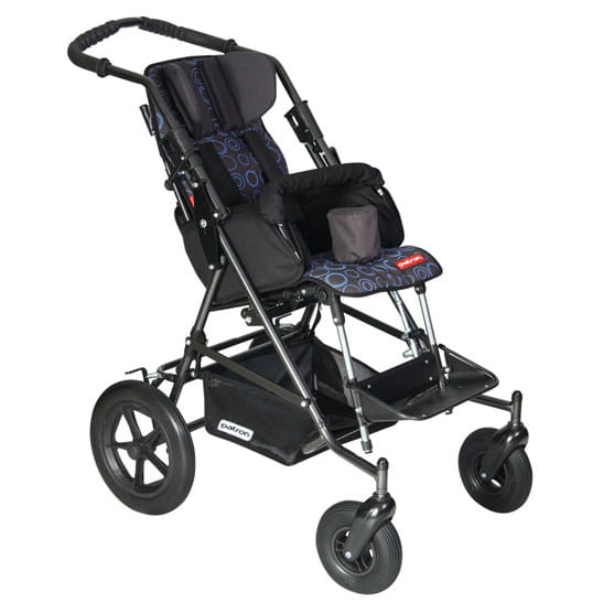 Standardowe wyposażenie wózka to pasy czteropunktowe, barierka przednia, regulowana na wysokość rączka oraz klin. Wózek posiada szeroką gamę wyposażenia dodatkowego.